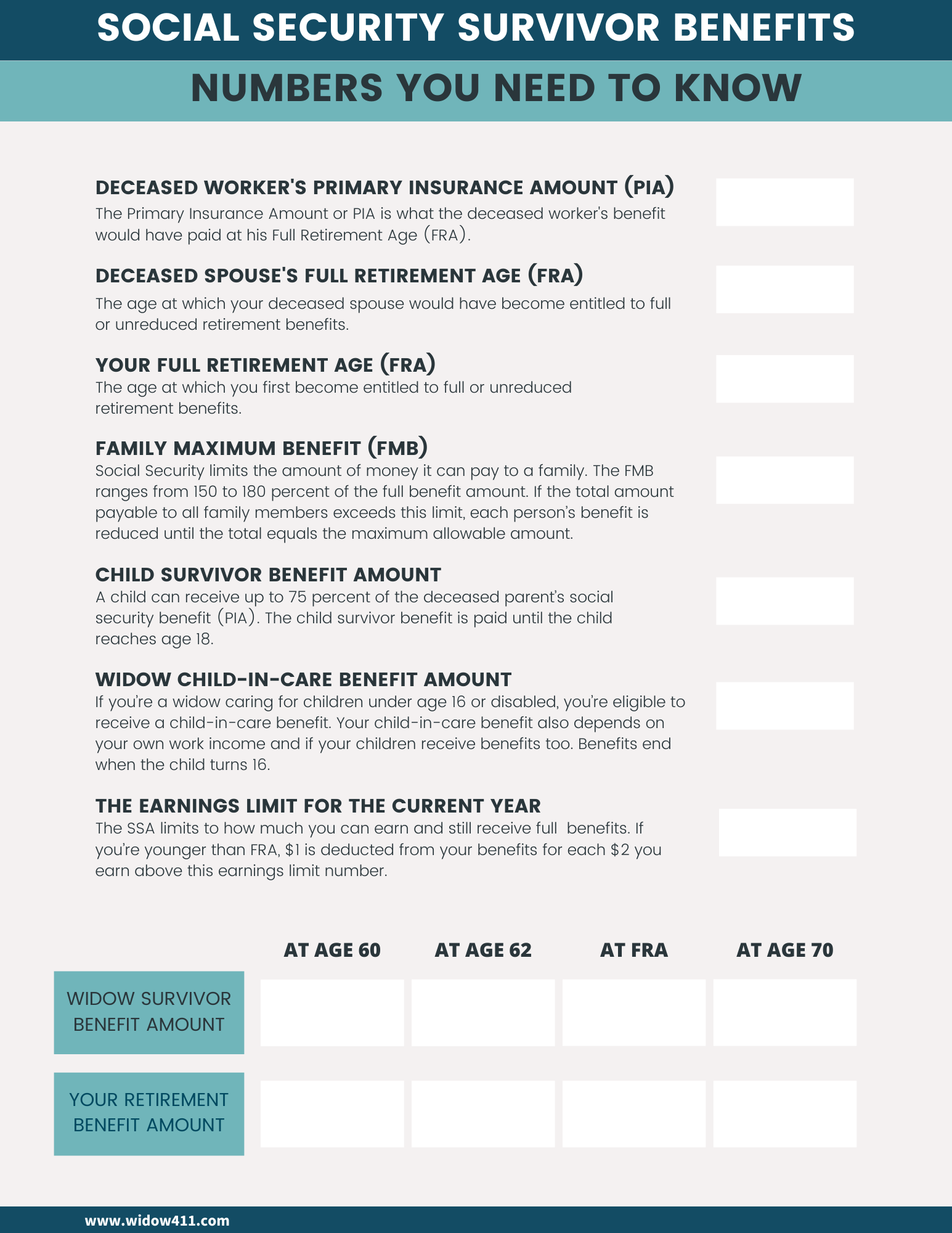 It's important that you know what those numbers/factors are so that you can make an educated decision about if/when to collect survivor benefits.