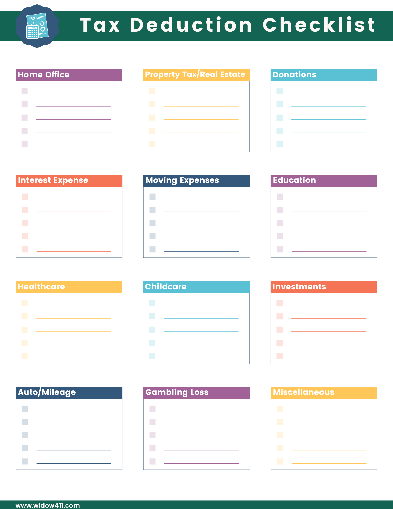 Use this Tax Deduction Checklist to keep track of all your deductions. Download the worksheet and add it to your binder.